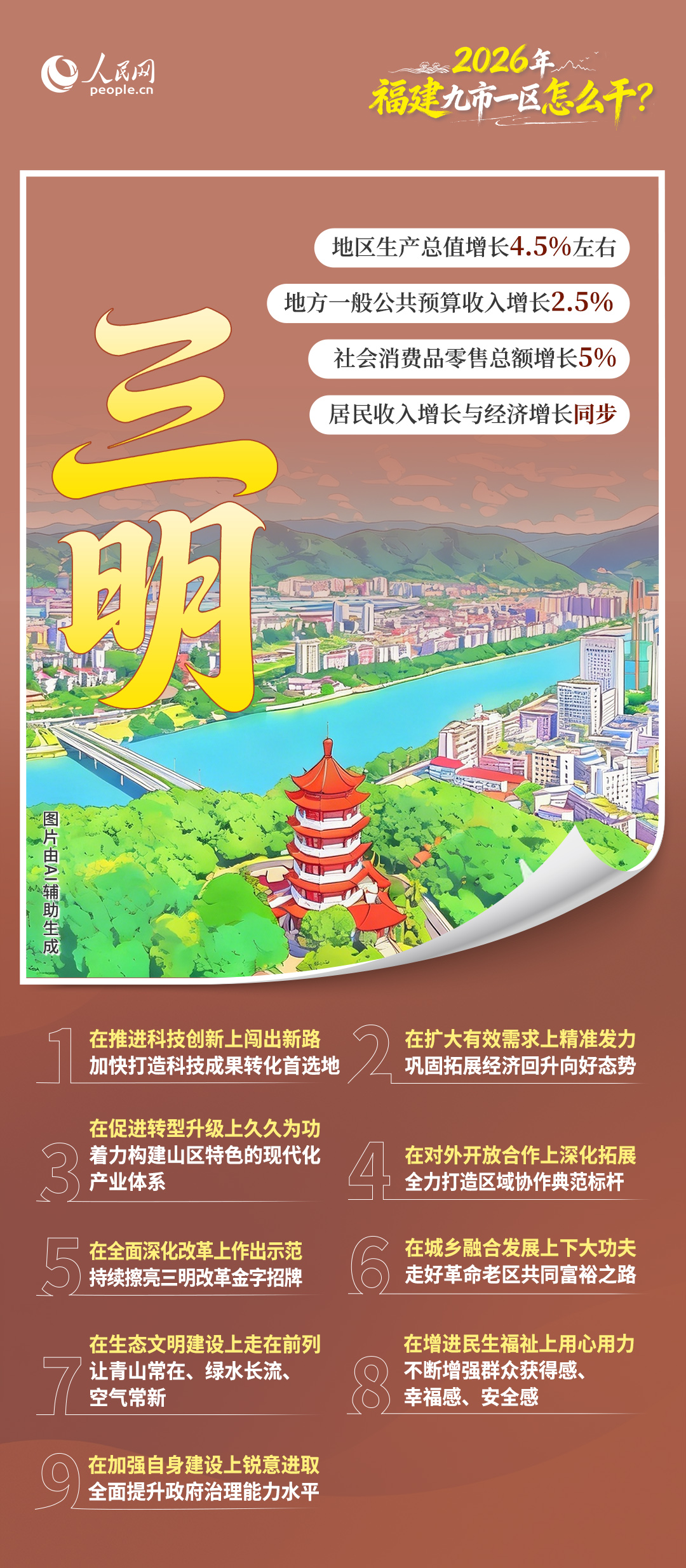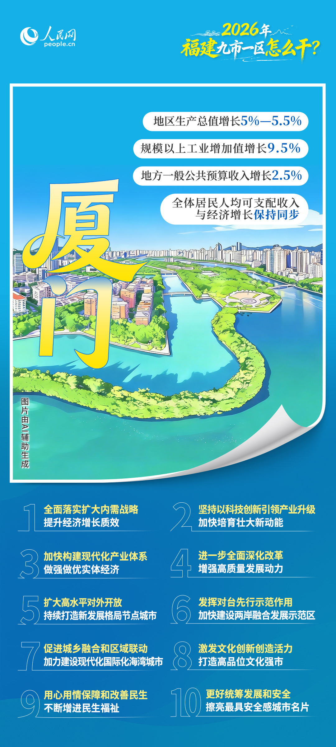近期,福建各地兩會陸續召開。2026年是“十五五”開局之年,福建九市一區都在各自的政府工作報告中提出了什麼目標?重點將在哪些方面發力?一起來看——