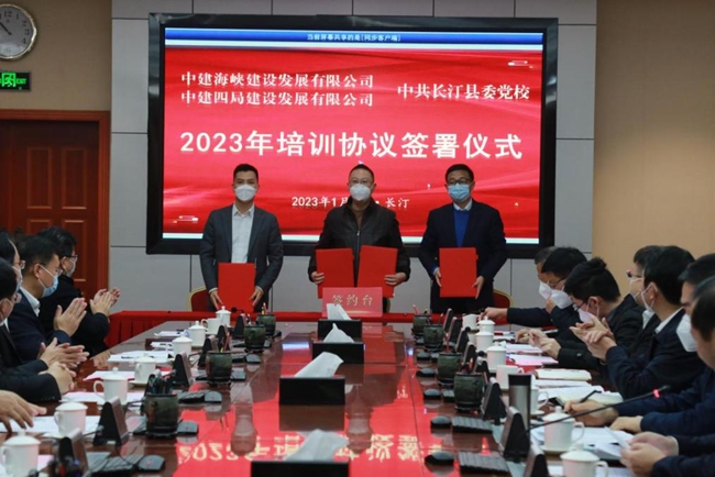 长汀县委党校(县行政学校)与中建海峡签署2023年培训协议。中建海峡供图
